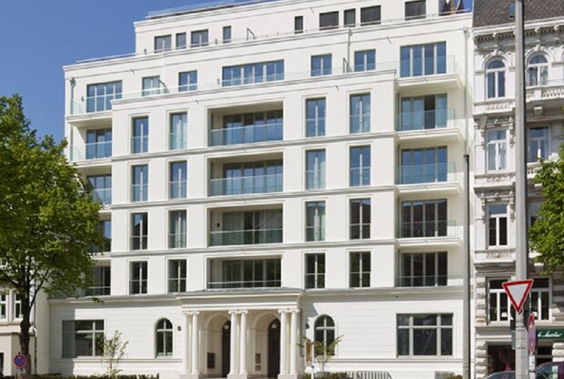 Im Herzen der Metropole Hamburg hat die Zech Immobilien GmbH 25 repräsentative Wohnungen mit Wohnflächen von 85 m² bis 392 m² sowie 30 Tiefgaragenstellplätze entwickelt und im Individualvertrieb verkauft. Die repräsentativen Wohnungen verfügen über großzügige Terrassen, Balkone oder Loggien. In den Staffelgeschossen befinden sich die beiden Penthäuser mit jeweils separaten Dachterrassen. Das Besondere an diesem Bauvorhaben: Im Erdgeschoss ist das historische Säulenportal des ehemaligen Palais von 1877 bestehen geblieben. Als Kontrast wurde der darüber liegende Teil der Fassade in moderner und klarer Architektur neu errichtet.